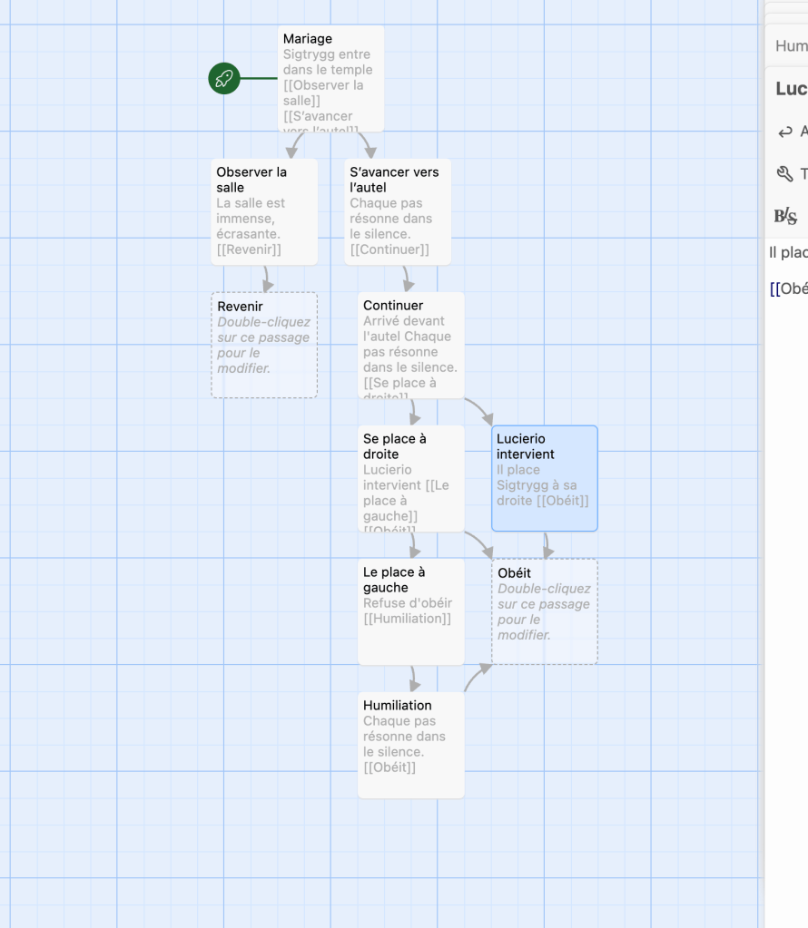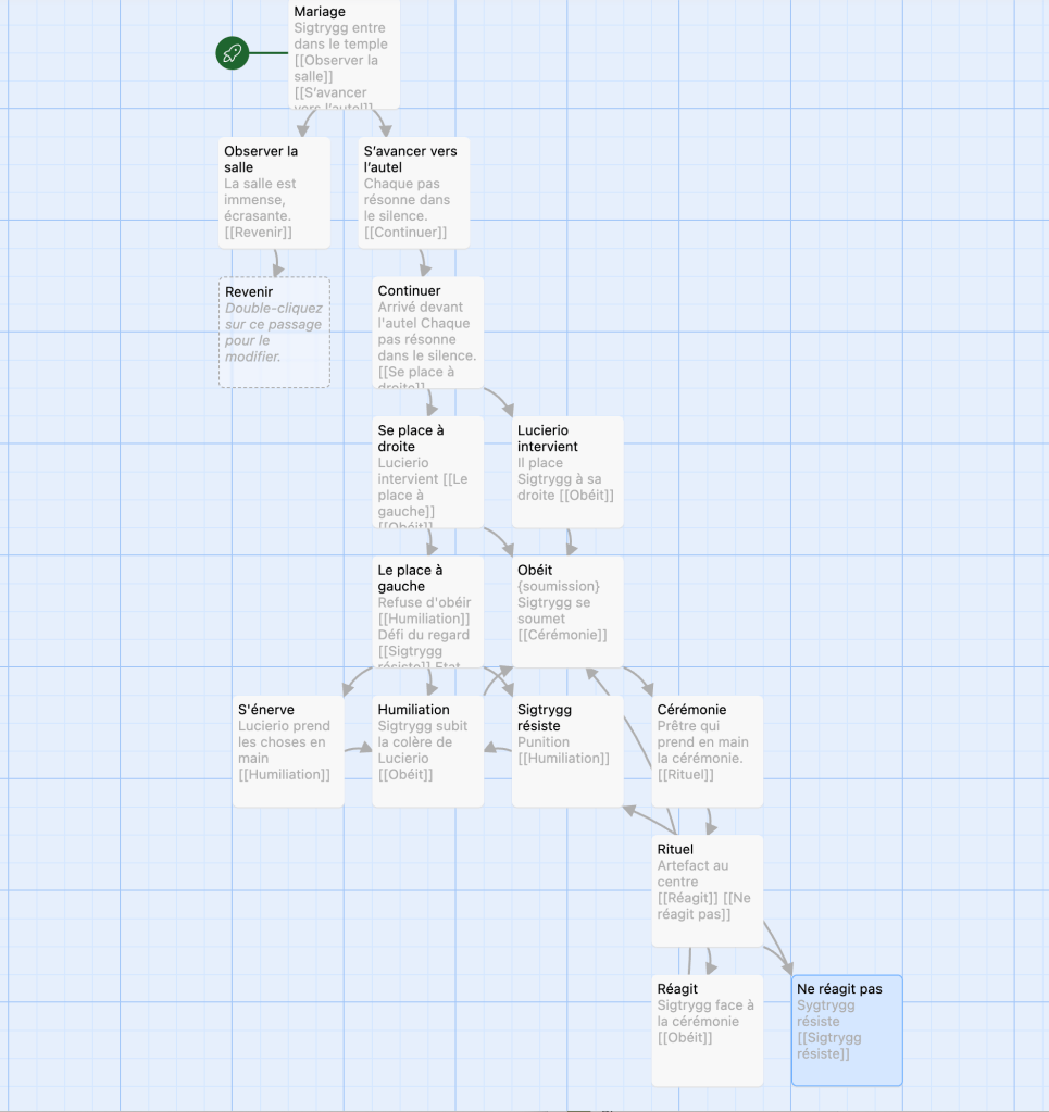 C’est un outil souvent utilisé en narrative design pour visualiser et construire des structures narratives interactives.