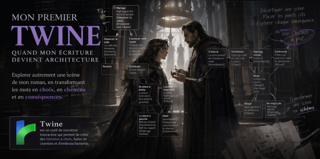Twine ne remplace pas mon travail d’autrice. Il me permet de voir ce que je crée sous un autre angle :